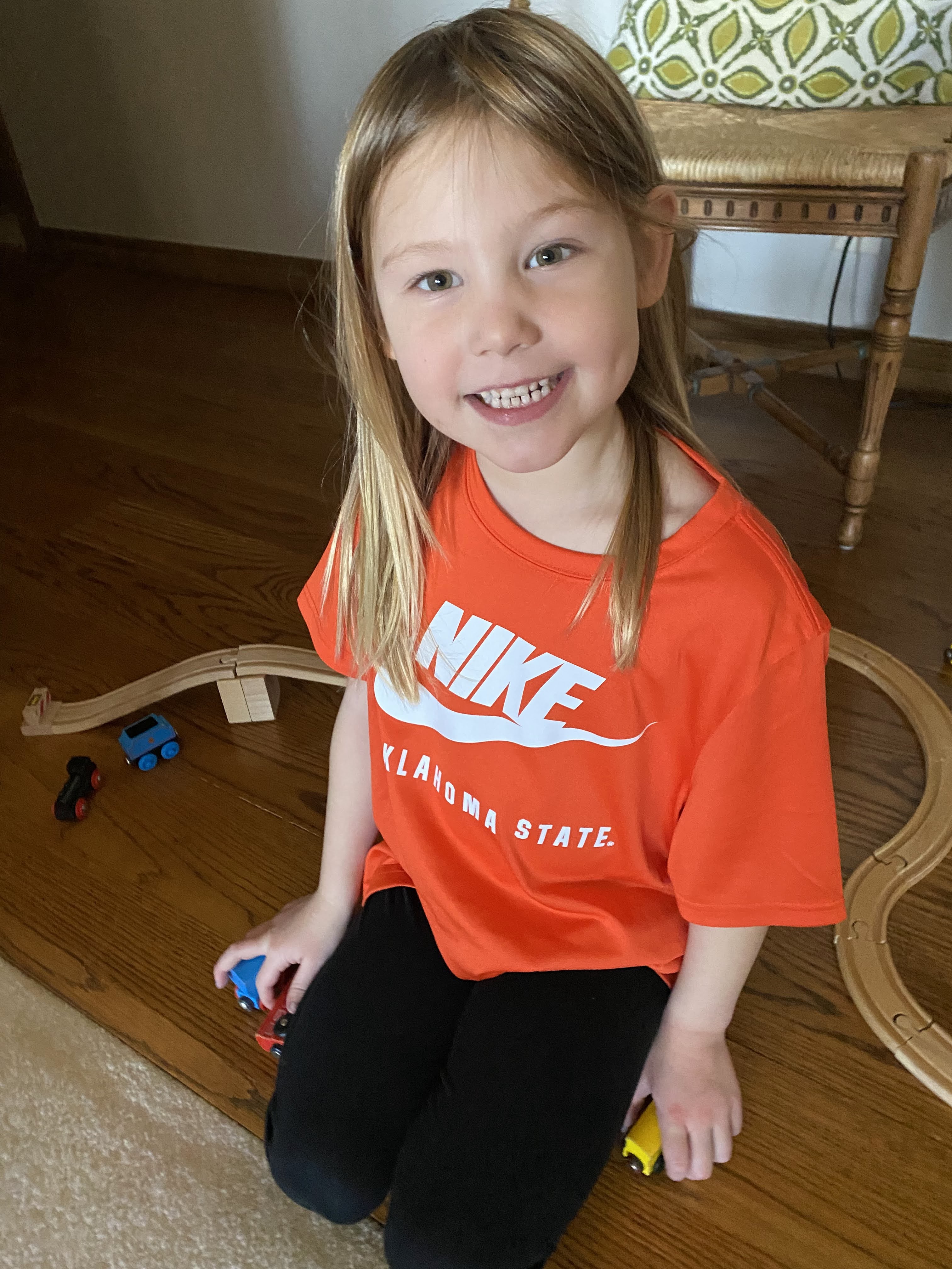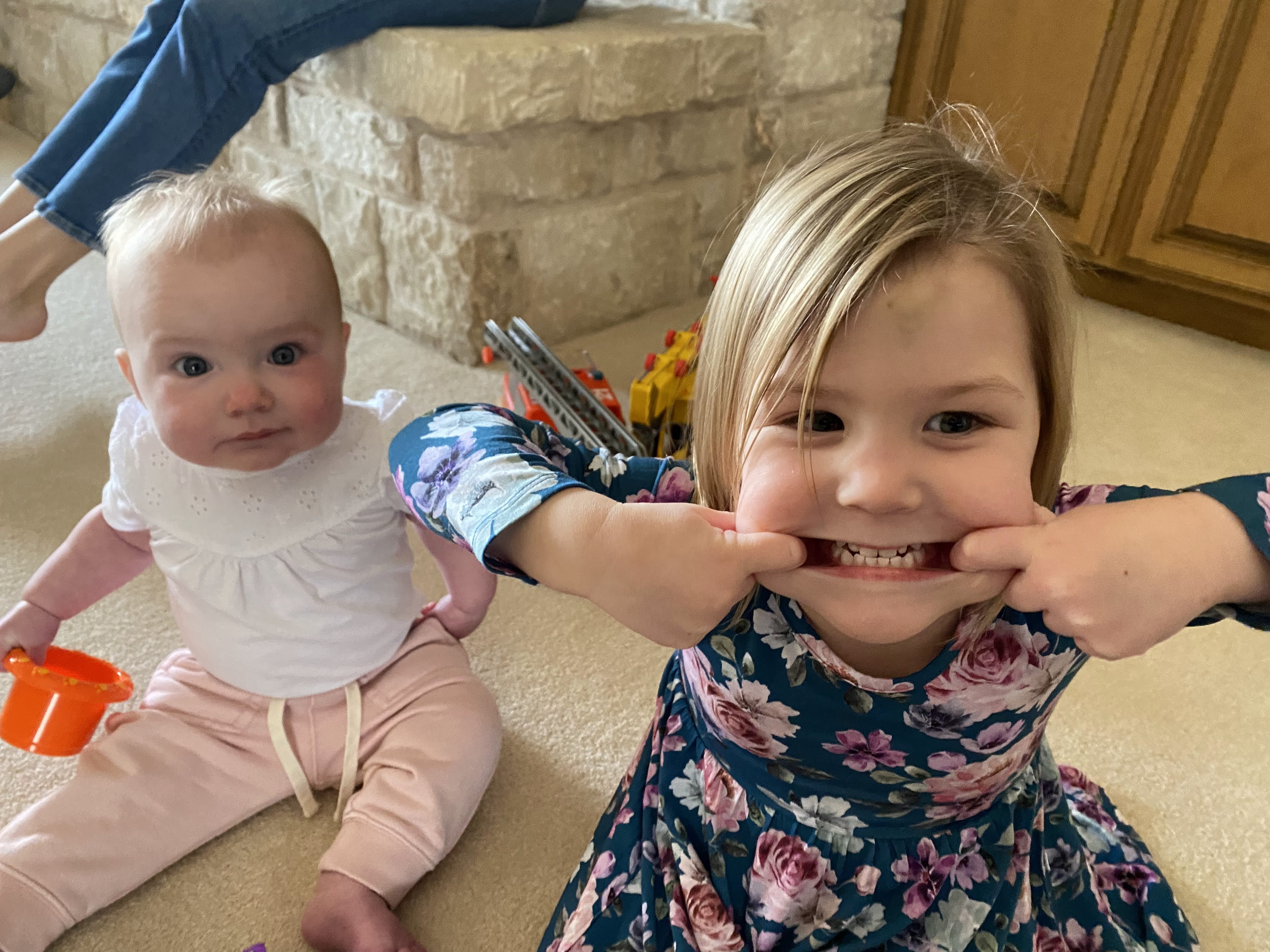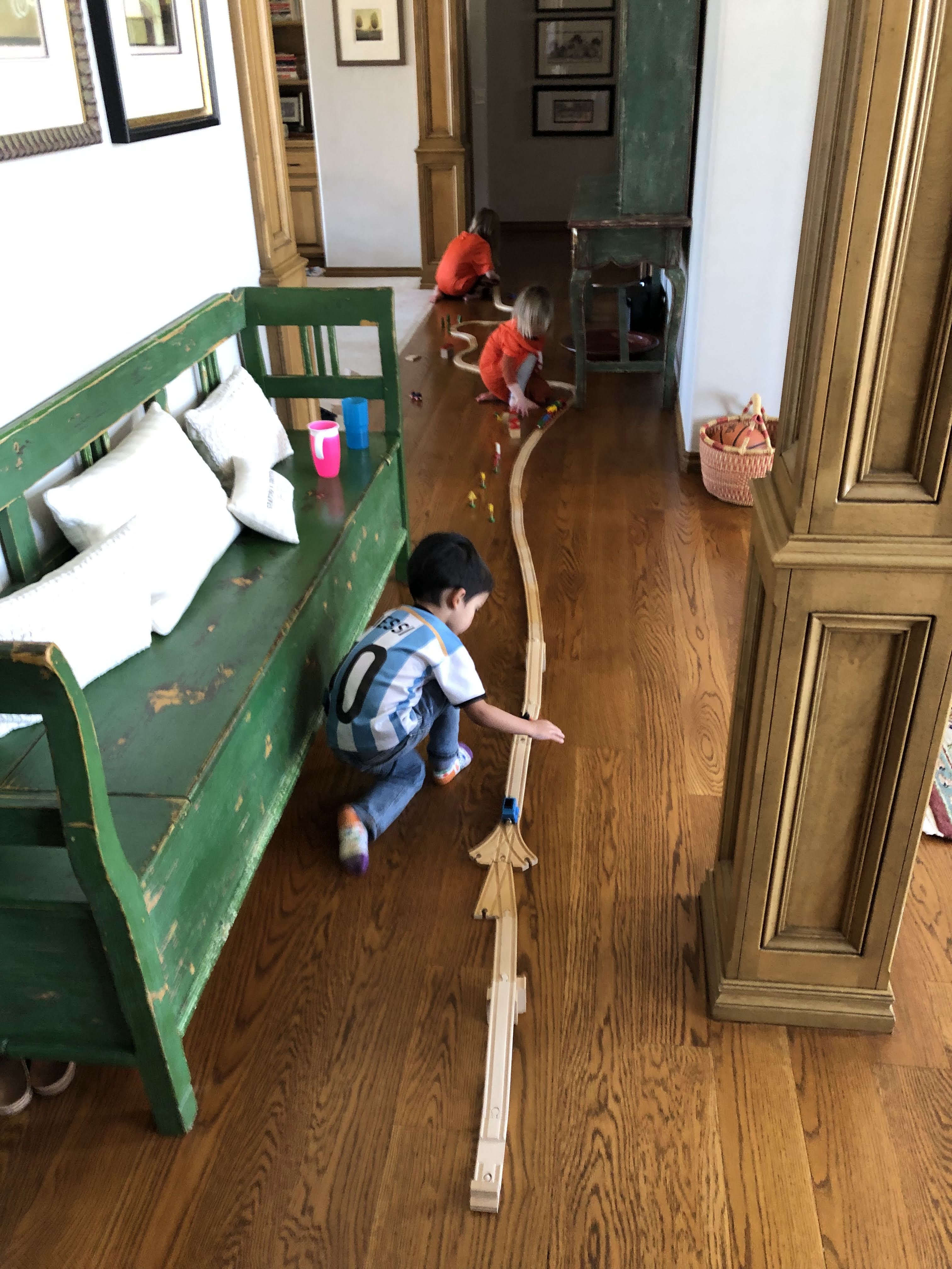 The Tiny Ones played well together. Note the lengthy Brio train track.