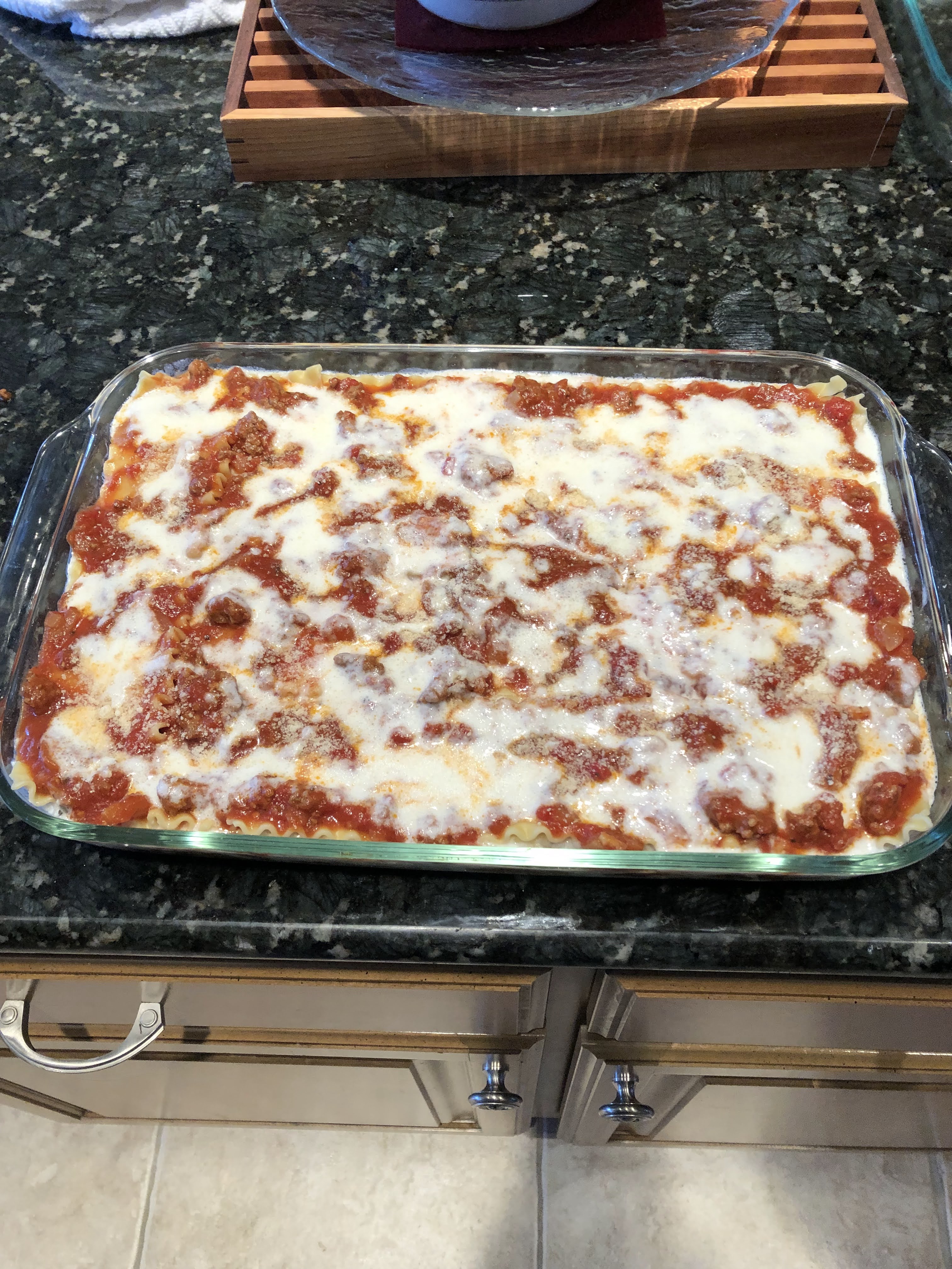 The first night was lasagna. I put out some gourmet cheddar and Manchego cheeses, Guacamole – Asian Inspired and Updated and Hummus – The Updated version. For sides I made broccoli with olive oil and garlic and garlic bread. Dessert was Flourless Chocolate Cake topped with whipped cream.