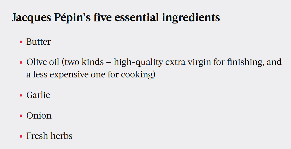 The 5 Ingredients You’ll Always Find in Jacques Pépin’s Kitchen